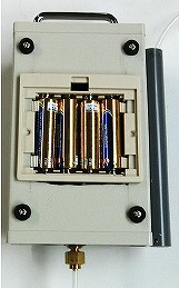 ■本体仕様 ●ドラム缶液面計の原理と見方 エアチューブの先端にある感知部(錘)を上から液体に入れるとエアチューブ内の空気は圧縮され圧力があがります。この圧力を液面レベルセンサーが感知してアナログメーターの指針で表示します。したがって、錘が底についた時の指針位置が液面高さです。 ドラム缶に入っている液体の液面は、液体により比重が異なりますので、 比重1(水)の表示になっています。 因みに灯油は0.8.・潤滑油0.9と言われていますので、参考になさって下さい。 ![]() ●使い方 エアチューブを伸ばし感知部(錘)をドラム缶の通気口から底に着くまで挿し込み、指針位置を読み取るだけです。位置確認後は、感知部(錘)を引き上げ収納します。 使用後は必ず電源スイッチをOFFにして下さい。(ONのままだと電池が消耗します) ※液体の残量が底から10cm以下だと検知出来ないことがあります。 ※エアチューブは潰したり、破損すると測定出来なくなりますのでご注意下さい。 ※感知部(錘)にゴミなどが詰まると測定出来なくなります。 そのときはエアチューブ取付部のネジを外して掃除してから、元に戻して下さい。 ●電池の交換 電池は裏側にある電池ケースに入っています。カバーを外すと電池が見えますので、+と-を間違えないように交換してください。 電池は使用しなくても消耗しますので 1年に1度は交換して下さい。出荷時は電池が入っています。 ■外観図
