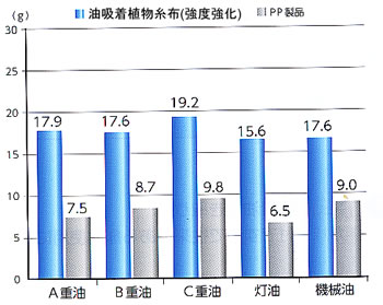 | ■優れた吸着力 鉱物油、動植物油に対して自重の約30倍以上の吸着力があります。 特に高濃度、高粘度の油に対して有効です。 ※油だけでなく有機溶剤、有害液体物質に対しても有効です。 ■水中混入の油も吸着 油水混合系から水分を吸わず油を選択的に吸着しますので、油水分離層、側溝などに最適です。 ■経済性も抜群 吸着力に優れているので、少量で大きな効果を上げることができ、低コストを実現します。 ■エコ素材(廃棄時の環境負担が少ない) 吸着力がポリプロピレン製に約3倍の為、ゴミ発生量が約半分以下に、また、原料が天然繊維主体である為、廃棄後の焼却熱量が半分で、地球温暖化の原因となる燃焼時のCO2排出量もポリプロピレン製の約半分以下です。 (ポリプロピレン製=約11.000cal/g) (本吸着布=約5.500cal/g) ■漏油も少ない 中空繊維の中に油を取り組み、回収の際、吸着した油のしたたりが少なく2次汚染を防ぎます。 ■使用例 海上汚染、工場排水、厨房排水 油流出事故で、ドラム缶置き場で 機械周りの漏油、タンクローリー等充填時に モーター周りに、厨房排水で 工場の油水分離槽、ろ過材として ■主な用途 鉱物油、動植物油 ■使用用途 強度強化にため足元床面の使用に最適各種機械周り拭き取り、オイル缶などの下敷きに、水面の浮上油吸着に、路面、床面の流出油吸着に ■重作業でも安心の強度 ![]() ■箱寸法 M1366KP-50AK:52×52×44cm M1366KP-65AK:66.5×66.5×50cm ![]() ■使用場所 各種機械工場(プレス、金型等)、石油関連工場 修理・解体工場、ボイラー室、船舶関係・河川港湾 ■油の種類別吸着量 (製品1gあたりの吸着量) ![]() ■仕様