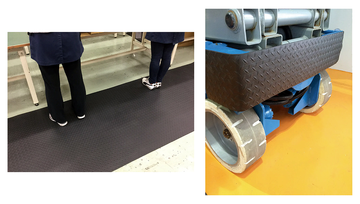 | ■特徴 ●やわらか素材、厚みが5mmで養生や疲労軽減に。 ●摩擦に強く表面が縞鋼板の為、滑り止め効果抜群です。 ![]() ●強くで丈夫で、ちぎれにくい素材です。 ●ロール状の為、ライン作業の現場でも使用可能です。 ■用途 ●作業台や製品の保護に。 ●ライン作業で作業者の疲労軽減や、落下物の破損防止に。 ![]() ■仕様