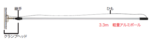 ●1人で、高所の直管蛍光灯(ソケット回転式)を交換できる直管ランプチェンジャー(回転式)です ●クランプヘッド+3.3mポールのセット |