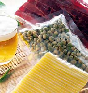| ■特徴 ●バリアー性がありますので、食品の保存性を向上するとともに、風味を逃しません。 ●脱酸素剤を併用すると一層保存性が向上します。 ●防湿性に優れ、水分を逃さず、吸湿しない効果があります。 ■使用例 ![]() ■仕様