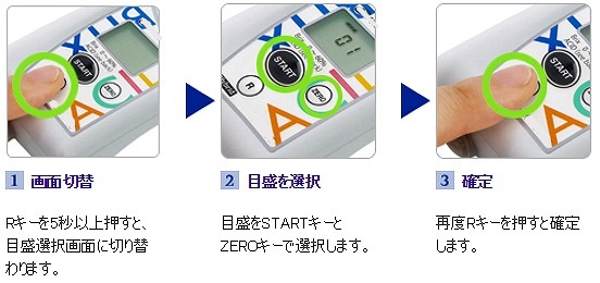 ■特長 ●フルーツの出来等において大切な糖(Brix)と酸を、この1台でどちらも測定できます。 ボタンを押すだけの簡単操作で、果物や野菜には欠かせない糖酸比も素早く表示。 測定に便利な付属品が全て入ったマスターキットをご用意しました。 ![]() ●キットには、以下が標準付属になります。 天秤、ポリビーカー2個、 アタッチメント、スポイト5本、電池2本 *試薬が一切不要になりました。酸度はサンプルを精製水(蒸留水)で希釈して測定します。(50倍希釈) ![]() ■測定方法・目盛切替方法 ●Brixの測定 ![]() ●Acidの測定準備 サンプルを1.00g測り、所定[*1]の重さになるまで精製水を足し希釈します。[*2]よくかき混ぜてください。 *1 目盛により、希釈する倍率が異なります (日本酒につきましては、製造段階と最終製品で希釈倍率が異なりますのでご注意ください。) *2 最後の微調整には付属のスポイトをお使いください。 ![]() ●Acidの測定 ![]() ●糖酸比の表示 測定値(BrixおよびAcid)の表示中にRキーを押すと糖酸比が表示されます。 ![]() ■目盛切替方法(果実番号の選択方法) ![]() ![]() ■補足説明(図式)