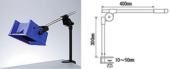 ※運転音は吸煙器の前面1mにて測定した値です。 ※処理風量はフィルターを取り付けた場合です。 ■オプション ●交換用フィルター ![]() ●吸煙機用アームスタンド 設置スペースがない場合や上部から吸引したいときに。 ![]() ・使用例&寸法図 ![]()