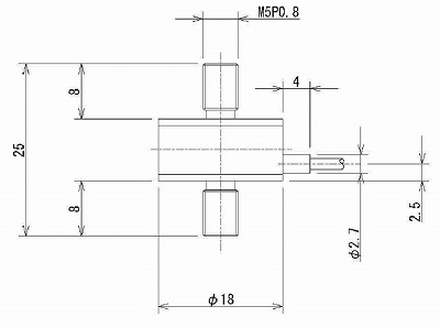 | ●φ18×H25(mm)の超小型ロードセル ●引張・圧縮の両測定に対応 ●センサー(ロードセル)の両端に雄ネジでサンプルを接続可能 ●荷重値の出力には表示器(M1E-ZTI)との接続が必要 ![]() ■特長 ●小型、軽量で狭いスペースにも対応目 ●センサ一両端にねじ留め可能で、設備への組み込み、サンプルの固定が容易 ●力の方向:圧縮引張両用 ●ねじ:おねじ(M5) ![]() ※1ケーブルに近い側のおねじが測定用です。測定側に負荷がかかるように設置してください。 ●機器に組み込む際の使用イメージ ![]() ※1 取付時には、測定側・固定側に注意してください。測定側には、M5ナット(別途ご用意ください)を用いて アタッチメントや設備とねじの根本が接しないようにお取付ください。 ※2 アタッチメント、吊り具は別売です。 ■寸法表 M1E-LMU-50N~500N ![]() ■仕様