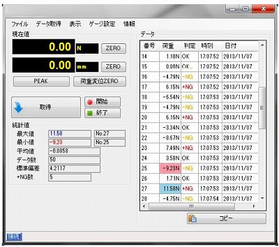 | ●1台の表示器で、異なるロードセルを調整なしで付け替え、測定可能。 ●圧縮、引張用ロードセル、トルク(回す力)測定用ロードセルなど、様々なロードセルを付け替え可能。 ![]() ■特長 ●異なる荷重値での測定(例:フィルムの測定) レンジの異なる測定も、センサーを付け替えて実現可能 フィルム突刺し強度、耐圧強度、摩擦係数測定 ![]() ●異なる力の測定(例:自動車内での実車検査) ダッシュボードロータリースイッチのトルク測定、ブレーキペダルの踏力測定 どちらも1台の表示器で測定可能 ![]() ●簡単に付け替えて使用可能 ![]() ●ハンディでの使用も可能 レバーなどの操作力、テープの引きはがし強度、ボタンを押す力 ![]() ●スタンドでの測定にも 粘着テープの90 度剥離試験、容器・包装の耐圧試験、ワイヤーの引張強度試験 ![]() ■データロガー簡易ソフトウェア(付属) ![]()