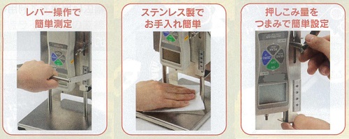 ●食品硬さ測定ユニット ●一定の押しこみ量で潰す力を簡単に測定できます。 ●安価なレバータイプながら高い再現性を得られます。 |