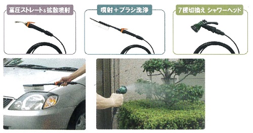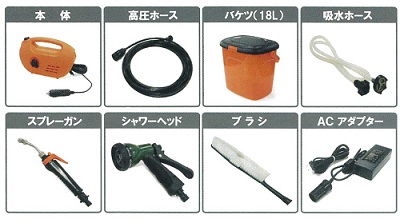 ■特長 ●水道接続不要、給水バケツ付き ![]() ●車のシガーソケットにシガープラグを差し込むだけで起動可能 ![]() ●家庭用コンセント接続 付属のACアダプター(全長約265cm)とシガープラグを連結 ![]() ●選べる噴射パターン 強力ストレート噴射から、やさしいミスト噴射まで切替え自在。 【高圧ストレート&拡散噴射】 しつこい泥や粉じん汚れもストレート噴射で楽々洗浄。先端を回せば拡散噴射に。 【噴射+ブラシ洗浄】 水を流しながらブラシ洗浄が同時にできる 【7種切り替えシャワーヘッド】 ミスト噴射もストレートも、ワンタッチで切り替えできる多機能シャワーヘッド。 ![]() ■使用方法 洗車、ベランダ・外壁洗浄、ガラス・網戸掃除、ガーデニング、海水浴後のシャワーなど ■セット内容 ![]() ■仕様