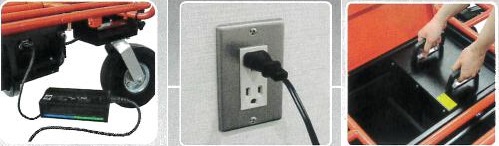 ●安定感と積載能力に優れた4輪タイプの電動運搬台車 ●最大積載量は、なんと250 ㎏ ●傾斜角7 度の坂道もスイスイ運べる |
