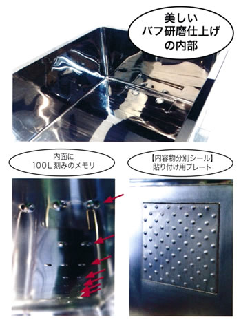 干しイカ等の水戻し、魚卵等の攪拌に 表面仕上げ加工 内部:バフ研磨 外部:バイブレーション研磨 |