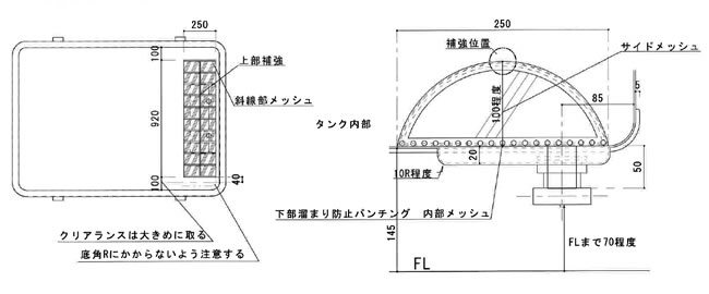 | ■概要 棒などでFRP製タンクの内部を撹拌する際、底板部や側板部の削れによる異物混入が不安という方におススメ。 ステンレス化によりその懸念も消え、内部撹拌の作業効率も生産効率も上がります。 ■特長 ![]() ■寸法図 ![]() ![]() ![]() ■仕様