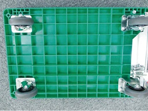 ■堅牢なリブ構造で耐久性に優れた樹脂台車です ■再生ポリプロピレン樹脂を使用し環境に配慮した台車です |