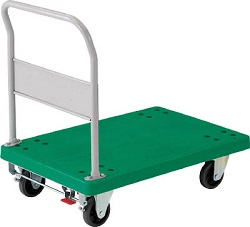 ■特長 ●堅牢なリブ構造で耐久性に優れた樹脂台車です ●再生ポリプロピレン樹脂を使用し環境に配慮した台車です ![]() ●タイヤ痕が付きにくいグレーゴムを使用 ![]() ●折りたたみ時高さ+86mm ![]() ■仕様