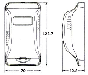 周囲の二酸化炭素濃度を検出し、アナログ出力に変換する装置です。 壁掛け式で、前面の液晶部にCO2濃度を表示します。 |