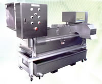 パック食品分別 生ゴミ異物除去 カキ穀粉砕 飼肥料フルイ ・分別、洗浄、フルイ、1台3役 ・99.6〜99.9%分別精度 |