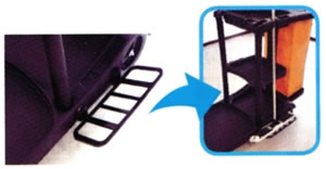 | ■用具一式を載せられる便利なカート ●バッグにファスナーが付いて、取出しがラクラク! ![]() ●フタ付ダストボックスで衛生的!グリップも持ちやすい形状です。 ![]() ●モップを置くことができるサイドステップ付属。 ![]() ■仕様