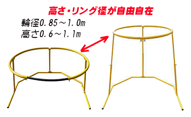 | ■特長 ●組み立て簡単、配達OK、フレコンスタンド ●簡単にフレコンの口を広げて自立させることにより、安全で便利な作業ができます ●農業や水産、土木建築の廃物、各種イベントのゴミ袋にも使用可能 ■本体仕様 ●M2438FS-1.0HN ・中身がいっぱいになったらスッと横に引き抜くだけ! ![]() ●M2438FS-AJN ・高さ、リング径が自由自在(高さ0.6~1.1m、リング径0.85m~1.0m) ・中身がいっぱいになったらスッと横に引き抜くだけ! ・ホームセンターフレコン(1500x700)、肥料廃パック(1300x1100)用 ![]() ●M2438FS-1.0LN ・低位置より作業を開始、バーを持ってリングを徐々に引き上げ、打撲を軽減! ![]() ![]() ■仕様