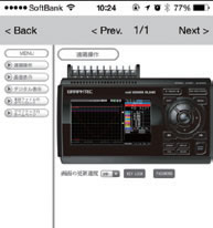 複数のファイルの重ね書きや、連結が可能。 連結機能は、リレー収録機能で収録したデータを連結する際に最適な機能です。 ●便利な機能 ・スケジュール測定機能 測定の開始/停止をスケジュール化でき、スケジュールに沿って自動的に測定の開始/停止を行います。 ![]() マウスドラッグにより、簡単にスケジュール設定が可能 ・グループ機能で統括管理 グループ機能を使用することで、複数台使用時でも測定の開始 / 停止が一括で行えます。 各機器の測定データもPC内に保存されるデータは1つのファイルとして統合されます。 ![]() ●変換保存&間引き機能 GBD(グラフテックバイナリデータ)形式で保存されたデータをCSV形式に変換が可能。 間引き機能を使用する事で、一定間隔での間引きが可能です。 間引き時の処理方法としてOFF、平均値、最大値、最小値の選択が可能。 OFFは、一定間隔の特定点の値となります。 ○スマートデバイス ●専用アプリでSTART/STOPやサンプリング間隔設定、アラーム出力が操作できます。 ●ブラウザで接続したM245L-240Gの画面をリモートコントロールできます。 ![]() ■PC/スマートデバイスで使える便利な機能 ●USBドライブモードM245L-240GとPCをUSBケーブルで接続し、 USBドライブモードで起動すると、M245L-240GがPCのドライブの1つして認識し、 M245L-240G内の測定ファイルをドラッグ&ドロップでPC内へ移動が可能です。 ●豊富なネットワーク機能(GL無線LANユニット使用時) WEBブラウザ / FTPサーバ機能:WEBブラウザ上で本体操作や波形表示が可能。本体内データのPC転送も可能。 FTPクライアント機能:一定間隔で本体内データをFTPサーバへ転送が可能。 NTPクライアント機能:定期的に、本体時刻をNTPサーバの時刻に修正可能。 ■本体仕様