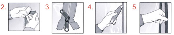 ●ジッパー(2本入り)/品番 M2461Z-PB 出入りスムーズ!! 養生シートを取り外すことなく2.1mのジッパーで中からも外からも自由に出入りができます。 ![]() ・使用方法 1.養生シートを設営したら、どこを出入口にするかを決めます。 2.シートにほこりがついていないかを確認し、どの部分に貼るのかを決めます。 ジッパーの長さがシートの高さに足りていることと、金具が必ず下にきていることを確認して下さい。 3.裏紙を剥がしながら、できるだけ垂直にジッパーを貼り付けます。 下にある両方向の2つの金具が、粘着部に貼り付かないようにし、 特にシート側の金具がジッパーとの間に挟まらないように注意します。 4.慎重に金具を上に向かってスライドさせながら、ジッパーを開いていきます。 カッターなどを使って、ジッパーの開口部に沿ってシートに切れ目を入れ、完全に切り離します。 5.開口ができたら、指でジッパーとシートを挟みながら上下にスライドさせ、 しっかりと両サイドのジッパーをシートに固定させます。 粘着が安定するまでの数分間は、金具を下まで下げ、元の状態のままにしてください。 ![]() ・大きな開口が必要な場合 お好みの開口幅に合わせてもう1本のジッパーを同様に取り付けます。 2本のジッパーを装着し、ジッパーを開けてシートを上部に留める際は、 同梱の紐を使用してシートが落ちるのを防ぎます。 ![]()