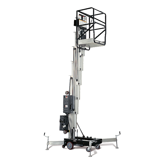| ■特長 ●5.8m~12.4mから選べる6モデル ●作業場所まで押して移動、セット、上昇すべてが1人でこなせます。 ●100Vコンセントから電源を取れば、任意の高さまで上昇できます。 ●オプションのDCモデルを選択いただくと、コンセントのない場所でも作業可能です。 ●DCモデルの充電器はオートチャージャーです。 ●オートパワーオフで電源の切り忘れを防止します。 ●ノンマーキングタイヤにより、床面にタイヤ跡がつきにくくなっています。 ●アウトリガーを貼り出さないと、上昇しない安全設計です。 ●作業床には100Vコンセント取出口が備えられています。 ●上昇下降の操作はボタン式で簡単です。 ●階段状の観客席上空の作業には、オプションノストラドルキットを用いると座席をまたいで、アクセスマスターをセットできます。 ●用途に応じ、オプションの幅狭タイプ作業床や拡張する作業床とワンタッチで交換可能です。 ■トラックで運搬する際は、倒して全高を下げます。 アウトリガーをセットしないと上昇しない安全設計 ※M2469G-19AMタイプを除く ![]() ■使用例 ![]() ![]() ■タイプ