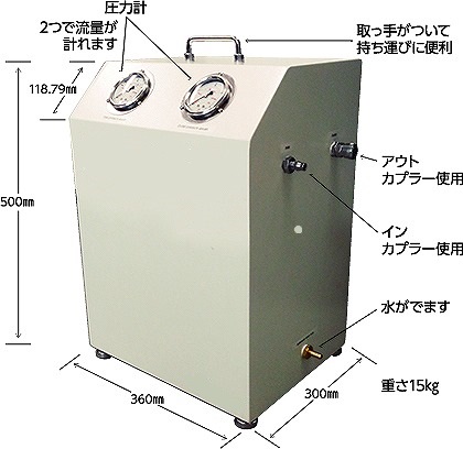 コンパクトで電気もフロンガスも使用せず環境にやさしく、優れた性能をもつ低価格なエアードライヤーです。 持ち運び便利なカプラー使用で場所を選びません。 新しい型のエアードライヤーです。 |