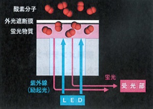 | ■特長 ●持ち運び可能 持ち運びができるコンパクトサイズだから、すぐにDO測定が可能です。 ●流速がいらない 酸素の自己消費がない為、撹拌が困難で、流速のない環境でも測定が可能です。 ●簡単メンテナンス 電解液・隔膜がない構造の為、頻繁な消耗品の交換がなく、長期に渡ってノーメンテナンスで使用できます。 ●妨害物質の影響がない 硫化水素やpH変動など妨害物質の影響による測定誤差がほとんどありません。 ●安全・衛生的なデザイン 電解液・鉛などを使用していない為、 隔膜の破損による有害物質流出の心配がありません。 ●魅力的なコストパフォーマンス 光学式DO計としてはリーズナブルな価格でご提供可能です。 ■基本機能 ●シンプルデザインだから操作が簡単 誰にでも取り扱えるシンプルなデザインの為、操作方法に迷う事はありません。 センサーの校正~測定まで流れるように計測を行う事が可能です。 ![]() ●記録出力標準装備 0-5V出力を標準装備している為、データロガーなどに接続し、計測値の連続データを取得する事が可能です。 ![]() ●専用電源アダプター標準付属 専用の電源アダプター(AC/DCアダプタ―)を標準付属しており、電池切れや電池が手元にない際、電源アダプターを接続する事で継続して使用する事が可能です。 ![]() ●優れたデザイン センサープローブは堅牢かつしっかりと測定地点まで沈み込むSUS304製。 プローブの先端にはDO検出部を保護する保護ガードが付いており、気泡の滞留を防ぐ泡抜き用の穴を設けています。 ![]() ●充実した付属品 表示器のシリコンラバーケース、ストラップキーリング(ストラップは別途ご購入下さい)、専用電源アダプタ―、単3乾電池(試用品)など付属品が充実しております。 ![]() ■使用用途 ●用途 ・水質検査のフィールド測定 ・定置型DO計のチェック ●使用分野 ・河川・湖沼・ダム ・水産養殖の生簀 ・農業・ハウス栽培 ・排水処理設備 ![]() ■測定原理 - 蛍光強度の変化により酸素濃度を計測 酸素計の検出端に使用されている蛍光物質に励起光の照射を行うと発光します。 この時の発光強度は、蛍光物質内の酸素分子量が増加する程弱くなる事から、消光現象(クエッチング現象)と呼ばれます。 本機はLEDにより蛍光物質へ励起光を照射し、その時の消光現象による蛍光強度の変化をフォトセンサーで検出することで酸素濃度の測定を行います。 ![]() ■仕様
