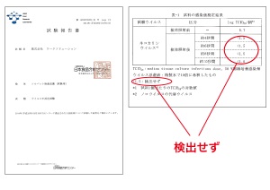 ●ネコカリシウイルス(ノロウイルス代替品)に対して4秒の紫外線照射で検出されずという試験結果が出ました。