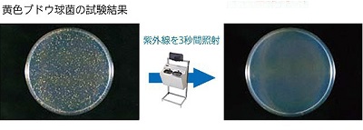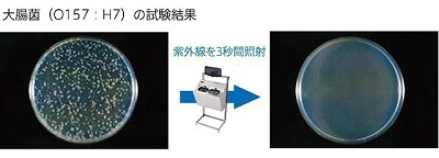 ●M2535P-100Sの紫外線装置に、大腸菌O157と黄色ブドウ球菌をそれぞれ設置し、紫外線を3秒間照射しました。