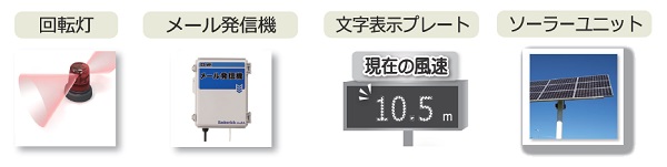 ■オプション 多彩な組み合わせで様々な現場の課題に対応します。 メールかFAXにてお問い合わせください。 ●回転灯 測定値が規制値を超えたら回転灯を動作させます。 作業員への注意喚起や現場の異常把握が可能となります。 ●メール発信器 測定値が規制値を超えたとき警報メールを送信します。 FOMA網のため全国どこでも繋がります。 メールアドレスの登録数は無制限、登録などは専用WEBでいつでも設置可能。 ●文字表示プレート ご希望の文字で(計測名など)作成できます。 ●ソーラーユニット 電源や固定回線の確保が難しい条件でも連続運用が可能となります。 設置環境に応じてパネルとバッテリーの容量サイズを選定します。