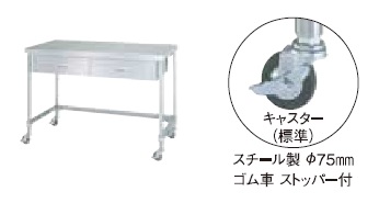 ステンレス作業台(片面引出・三方枠タイプ) 品番 M253DT-06045S 廃番 |