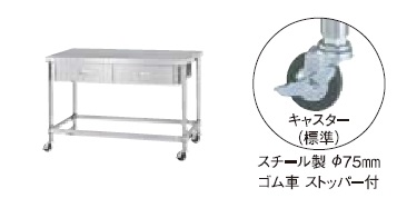 ステンレス作業台(片面引出・四方枠タイプ) 品番 M253DZ-06045S 廃番 |