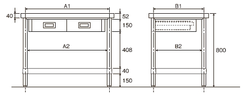 ステンレス作業台(片面引出・四方枠タイプ)です。