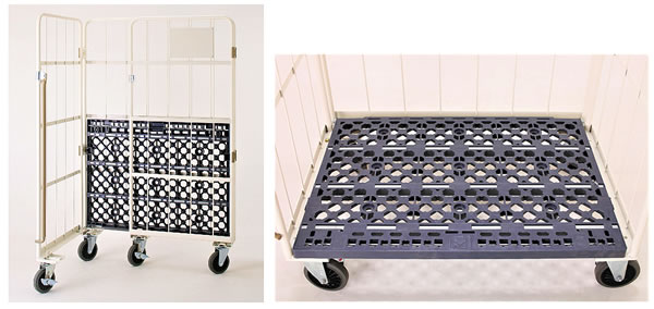 割れにくい床板樹脂・ゴム跡が付かないグレーキャスターを使用。とても使いやすいカゴ台車です。 | カゴ台車 品番 M2559G-1100W 価格は下記をご覧下さい |