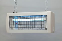 屋外軒下用電撃殺虫器 誘虫ランプで虫を誘引し、高電圧で殺虫します。 ●耐久性に優れた高級塗装仕上げ ●取付高さ地上1.8m以上 ●二重安全装置付き(虫受け皿、保護カバー) ●チェーン吊り下げ式 ●有効面積150~300m2 ●20W 直管 誘虫ランプ×2灯 |