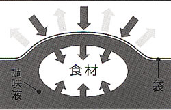 | ■特長 ●オイルレス真空ポンプ採用 オイルレス真空ポンプの採用により、オイル交換の手間や、気になるオイルの匂いがありません。 ![]() ●真空槽お手入れ簡単 ヒーターユニットは取外し可能なため、真空槽の清掃もラクラクです。 ![]() ●多彩な袋素材に対応 10mm幅の高性能ヒーターを搭載することで、幅広い素材の袋に対応します。 ナイロンポリ袋、アルミラミネートガゼット袋 ![]() ●スピード浸透モード(繰返しモード)搭載で「時短調理」 設定した真空度と大気圧を繰り返すことにより調味液等の食材への浸透を促進させます。 調味液が食材に素早く浸透し、仕込み時間を大幅短縮 ピクルス、小豆、米、塩レモン ![]() ■操作手順