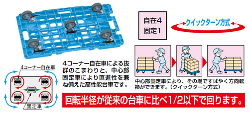 軽量ボルトレス仕様のメッシュキャリーに五輪車仕様が登場。 直進性・旋回性共に優れる万能台車です。 |