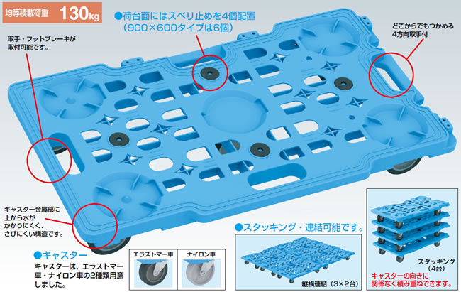 ●M350CR-M900シリーズ 荷台寸法900×600mmの大型対応台車です。