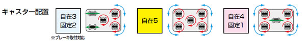 ●フットブレーキ取付例 ※キャスターの配置は自在3輪、固定2輪でご使用ください。 ![]() ■仕様