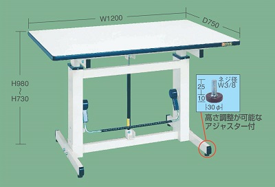 ●ガスバネ式昇降作業台 ●均等耐荷重100kg ※均等耐荷重表示は安全率20%を見ております。 ●高さ730~980mm の範囲で任意の高さに調整可能 ●組立式、粉体塗装 |