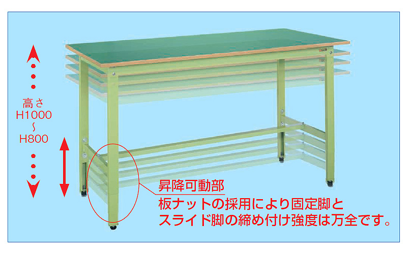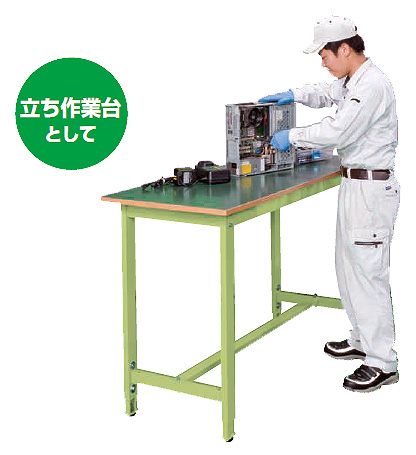 | ■特長 ●均等耐荷重200kg ●改正RoHS10物質対応(リノリューム天板は除く) ●本体は角パイプ(構造用鋼管)を使用しているため非常に堅牢でしかもホコリがたまりません。 ●高さ800~1000mmの範囲で任意の高さに調整可能 ![]() ●カンヌキは中央と後ろ側のどちらにも取り付け可能です。 ![]() ■用途 ●かさの高い小さな作業に最適です。 ![]() ■タイプ