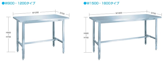 カブセ天板仕様のステンレス高さ調整作業台 作業に合わせて、人に合わせて高さ調整が可能 |