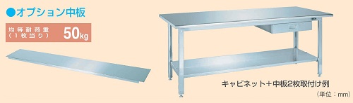 ●耐荷重 150kg ●作業に合わせて、人に合わせて高さ調整が可能です ●ステンレス高さ調整作業台 |