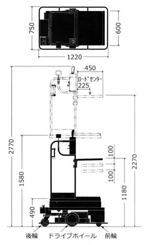 | ■免許不要!乗ったまま移動できる! ●免許不要!簡単操作! ●最少旋回半径720mmと小回り抜群。スリムボディで狭い通路もラクラク ●ジョイスティックでなめらかな操作感 ●緊急遮断装置・非常降下バルブ機構で安全対策も万全 ●緊急時にはドライブホイールのブレーキを解除できる。ニュートラルレバー付き ●メンテナンスストッパー付きでメンテナンスの時の安全も確保 ■製品画像 ![]() ![]() 参考データ:走行距離 約6.8km 昇降回数 約85回(バッテリー新品満充電時) ※バッテリーの状態や使用環境、頻度によって走行距離や昇降回数は変動します。 ■寸法図 ![]() ■仕様