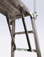 | ■特長 ●優れた安定性 ブレス材を2段目の踏桟に装着し、安定性の向上を実現。 ![]() ●垂直に設置する手掛かり棒 手掛かり棒を床材に対し、垂直に設置することにより有効作業面積が拡大。 ![]() ●55mmの大型ステップ 55mm幅の大型ステップにより安全性が向上。(M510SR-100DAシリーズ比:約38%アップ) ![]() ●堅牢設計 ブラインドリベット接合部は高強度リベットを採用し締結力を向上。 ![]() ■高さ比較 ![]() ■設置寸法 ![]() ■収納寸法 ![]() ■仕様