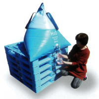 災害時における避難所や難民キャンプなどでの飲料水の提供に威力を発揮するシンプルなフレキシブルタンク。 | テトラ型災害時飲料サーバータンク200L 品番 M512M-TETRA200L 価格 ¥Mail |