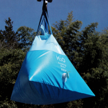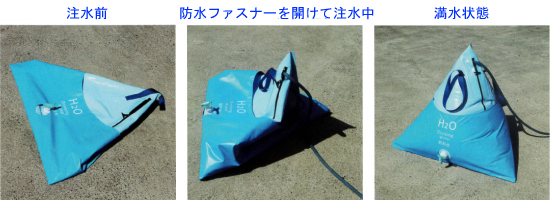 | ■特徴 ●飲料水はコックをひねるだけで排出でき、老若男女を問わず誰もがわかりやすい機能性を持っています。 ●本体には専用カバーが付き、傷や破損から守ります。 ●満水時には200リットルの飲料水が入り、大人一日あたり約70人分相当の飲料水を提供できます。 ●本体に設けられたベルトを用いてユニック車などのクレーンで吊り上げ移動可能です。 ●安定した正四面体形状で転倒し難く、安心して運べます。 ●注水は防水ファスナーを開けることで簡単に行え、ファスナーを開放することで内部の清掃も可能です。 ●収納時はフラットに折り畳まれ、ダンボール箱に収まって場所を取らない設計です。 ●飲料イメージの正四面体形状は世界共通のアイコンとなるデザインです。 ●材質は食品衛生法・食品、添加物等の規格基準に適合しています。 ●三脚櫓で吊り上げ 三脚櫓とチェーンブロックで人力でも吊り上げ出来ます。移動や架台の代用になります。 ![]() ●ユニック車で吊り上げ ユニック車で吊り上げ、積み込みや移行が可能です。車での移送も可能です。 ![]() ●パレットから給水 大型商業施設などでは、パレットを架台の代用として効率的に給水活動が出来ます。 ![]() ●軽トラの荷台からの給水 軽トラの積載は350kg。200LのM512M-TETRA200Lを積載可能。 ![]() ![]() ■仕様