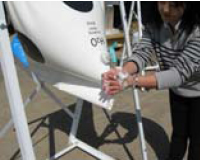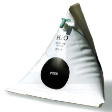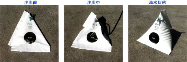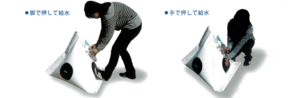 | ■特徴 ●満水時には70リットルの飲料水が入り、大人一日あたり約25人分相当の飲料水を提供できます。 ●飲料水は本体を手や脚で押すだけで簡単に排出でき、老若男女を問わず誰もがわかりやすい機能性を持っています。 ●スリーブにパイプを通すことで大人2人で担ぐことも可能です。 ●収納時は折り畳んでA3サイズの箱に収まり、場所を取らない設計です。 ●飲料イメージの正四面体形状は世界共通のアイコンとなるデザインです。 ●材質は食品衛生法・食品、添加物等の規格基準に適合しています。 ■用途 ●二人で移動 大人2人で担げます。足場パイプなどのパイプを通して移動させることが出来ます。 ![]() ●専用ラックから給水 組立て式の専用架台(ラック)でより効率的な給水が出来ます。 ![]() ●パレットから給水 1m四方程度のスペースの段差があれば、落差を利用した給水も可能です。 ![]() ●手洗いにも 防災の観点から、飲料水の確保の次に、感染症予防のための手洗いなどが重要視されています。小規模なコミュニティーへお勧めです。 ![]() ![]() ![]() ■仕様