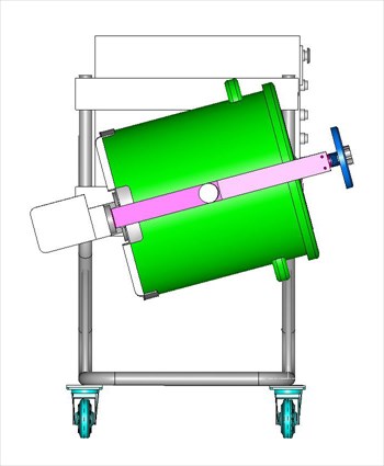 市販ステンレス缶でも回転混合!少量生産タイプのブレンダー 回転機構と揺動(スイング)機構によって、前傾・水平・後倒姿勢を取る事により、三次元的な混合撹拌効果が得られます ケースのままセットするので混合作業がカンタン!! ゆっくり混合でソフトな原料も混合可能 |