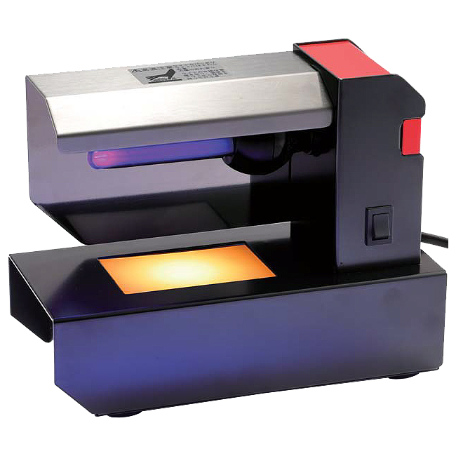 クレジットカード、紙幣、印紙、商品券などのチェックに威力を発揮!![]() ■特徴 ●上部からの紫外線照射により、紙幣等の特殊蛍光インクを検出 上から照射されるブラックライト(紫外線ランプ)に、紙幣、収入印紙、商品券、クレジットカードなどに施された特殊蛍光インクが反応します。 ●15Wのパワフルな出力で明るい場所でも判別できます。 上のライトには15Wの強力なブラックライトを採用。隠れていた模様が浮き出てきます。 ![]() ●紫外線照射部はカバーでしっかりと保護 ●下部からも透かし確認用の光源を照射 本物の紙幣なら下からのライトで透かしがはっきり確認できます。 ![]() ●コンパクトでスタイリッシュな形状 本体はコンパクトなスタンド型。カウンターなど手近な場所に置いて使えます。 ■仕様