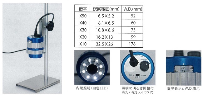 パソコンで拡大観察 可変式倍率のマイクロスコープです。 |