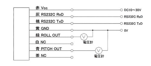 ■角度出力測定 Roll(X),Pitch(Y) ■外形図 ROLL軸(X軸)出力範囲,PITCH軸(Y軸)出力範囲 ■結線図 ■仕様